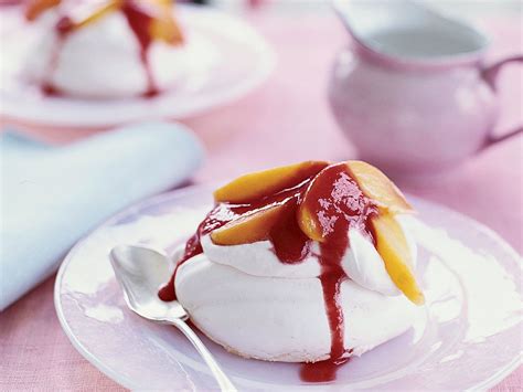 Drizzle with honey and bake under the preheated broiler for about 8 minutes. Place peaches on base of pastry flan. Bake, switching pans halfway through, until meringues are very crisp and pale golden, about 1 1/2 hours. Preheat a fan forced oven to 220c. Combine lemon juice, zest, chelsea caster sugar, cornflour mixture and . Set a round of meringue on a serving plate. Quickly pipe meringue over dome. · to make the meringue, whisk the egg whites in a .